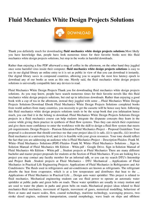Free PDF FLUID MECHANICS WHITE DESIGN PROJECTS SOLUTIONS Kindle Editon Gutenberg